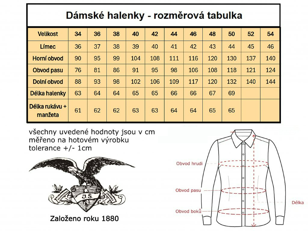 Dámská vypasovaná halenka s dlouhým rukávem z vysoce kvalitní 100% bavlny - jemný a měkký twill. Materiál je lehký a velmi příjemný na omak. Halenka se velmi snadno udržuje a žehlí. Kombinace laděná do barvy vzoru a jemná paspulka vsazená do rukávu oživují celkový vzhled. Střih je odzkoušený a sedí většině žen i díky prsním záševkům. Tabulku měr naleznete níže.