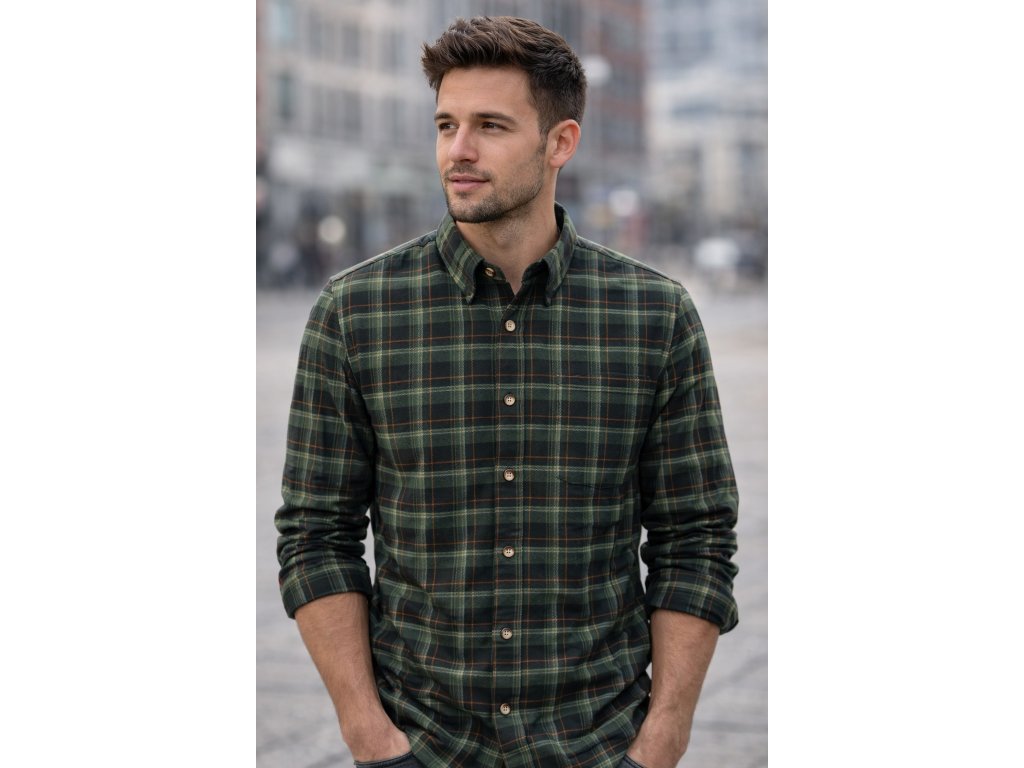 Pánská košile z oboustranně počesaného kvalitního flanelu (100% bavlna) s dlouhým rukávem. Košile je v provedení zelené káro.