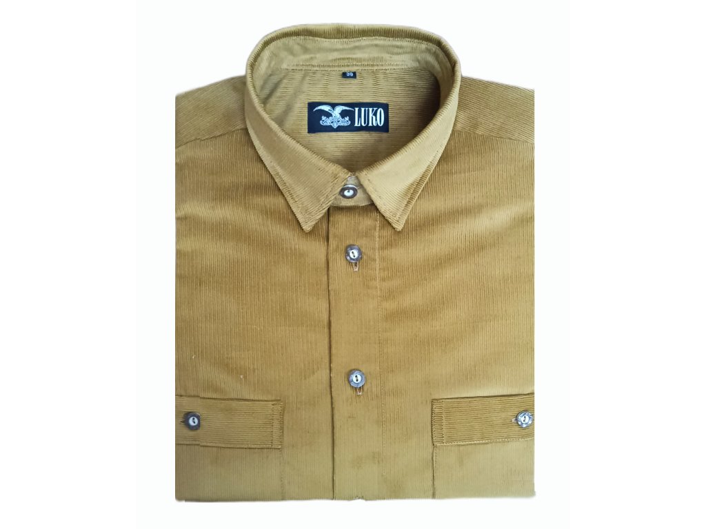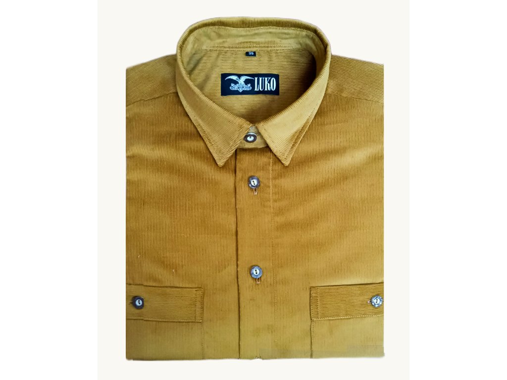 Pánská košile s dlouhým rukávem ze 100% bavlny - manšestr. Košile má dvě kapsy na knoflík. Dlouhá životnost a stálobarevnost manšestru, dělají z této košile top produkt, který je velmi žádaný nejen na našem, ale i zahraničním trhu.
