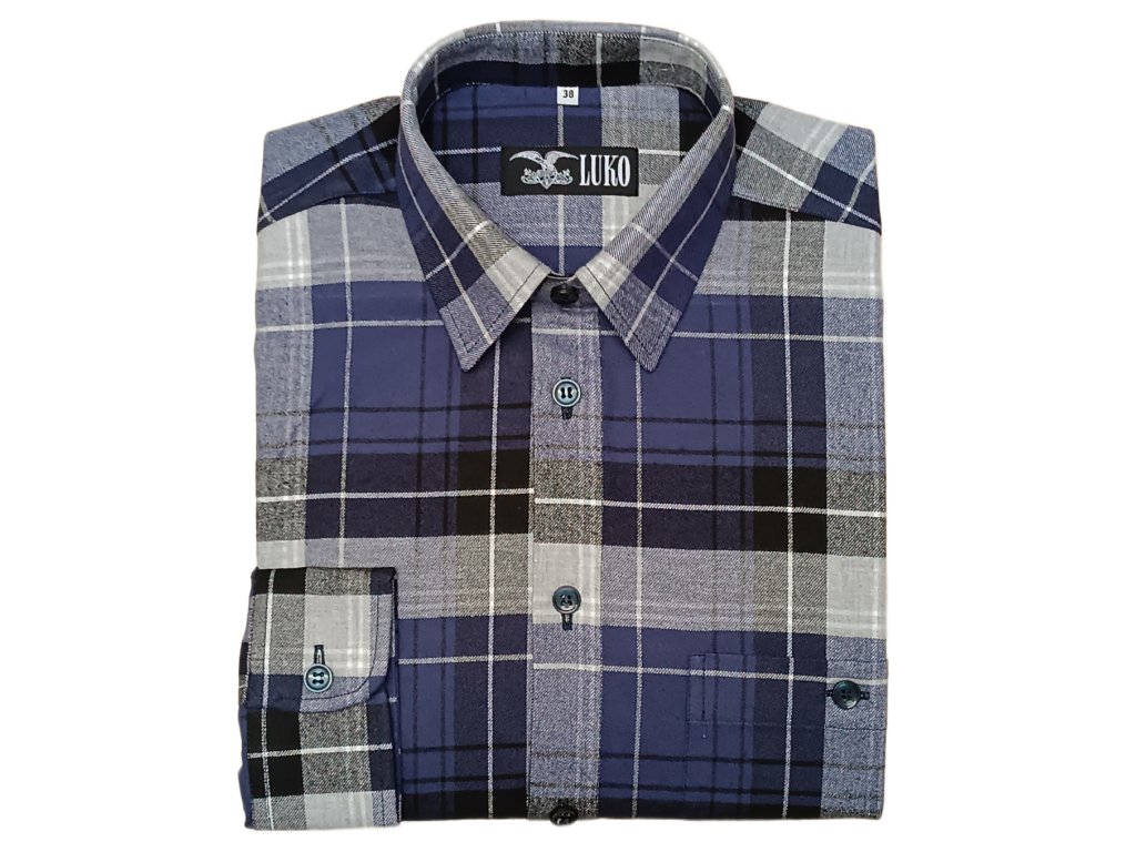 Kvalitní pánská flanelová košile ze 100% bavlny z (oboustranně počesaného flanelu) s dlouhým rukávem modré barvy s černým kárem.