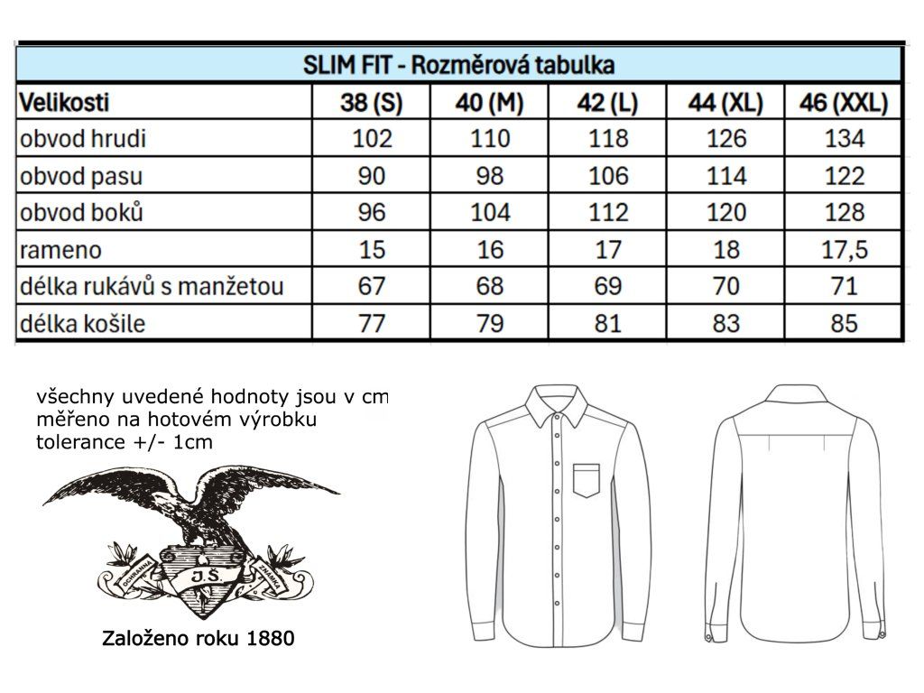 Pánská košile s dlouhým rukávem ze 100% bavlny v bílé barvě, střih SLIM FIT (zúžený střih). Knoflíky laděné do barvy košile. Košile se výborně udržuje a díky 100% bavlně si zachovává dobrou prodyšnost.
