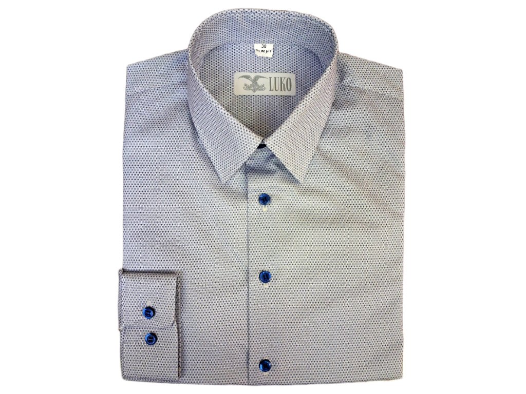 Elegantní pánská košile s dlouhým rukávem vyrobená z prémiové 100% bavlny, která zajišťuje maximální komfort při nošení po celý den. Bílý základ doplňuje jemný modrý vzor, který dodává košili moderní a zároveň nadčasový vzhled vhodný do práce i na společenské příležitosti.