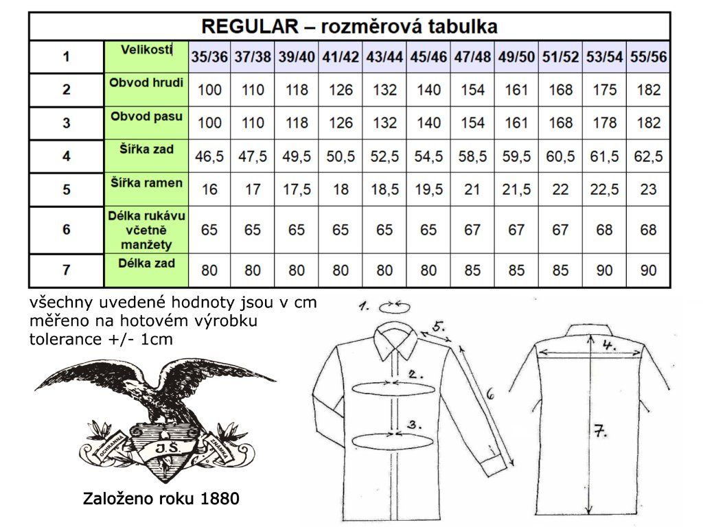 Velikosti: 38 - 46 (S - XXL); 47 - 56 (3XL - 7XL).