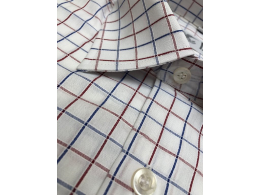 Pánská košile s krátkým rukávem z materiálu 100% bavlna v červeno modré barvě.