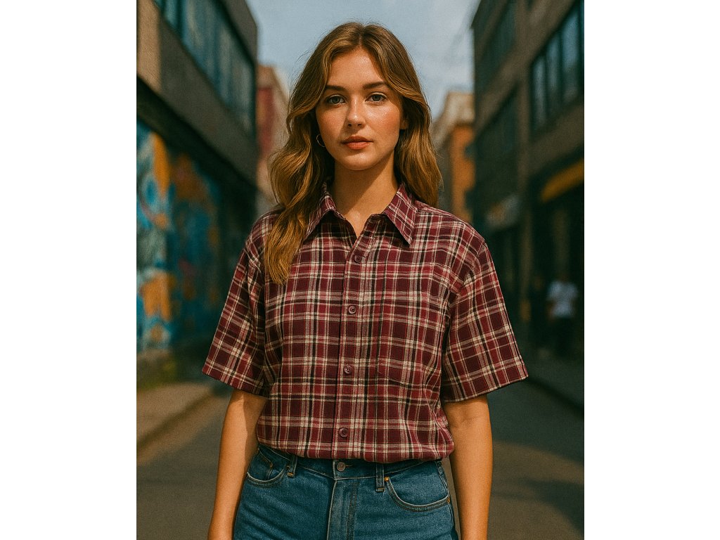 Košile s krátkým rukávem z materiálu 100% bavlna v červené barvě.