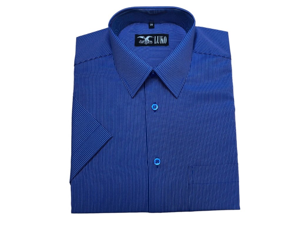 Jedinečná košile za super cenu. Krátký rukáv ze směsového materiálu 70% bavlna/30% polyester, modré barvy. Košile se snadno udržuje, stačí pouze vyprat na 40 stupňů a po vyprání sušit rozvěšené na ramínku. Příznivci netradičních materiálů ocení lehkost a příjemnou prodyšnost spojenou s chladivým účinkem. Košile má klasický rovný střih REGULAR.