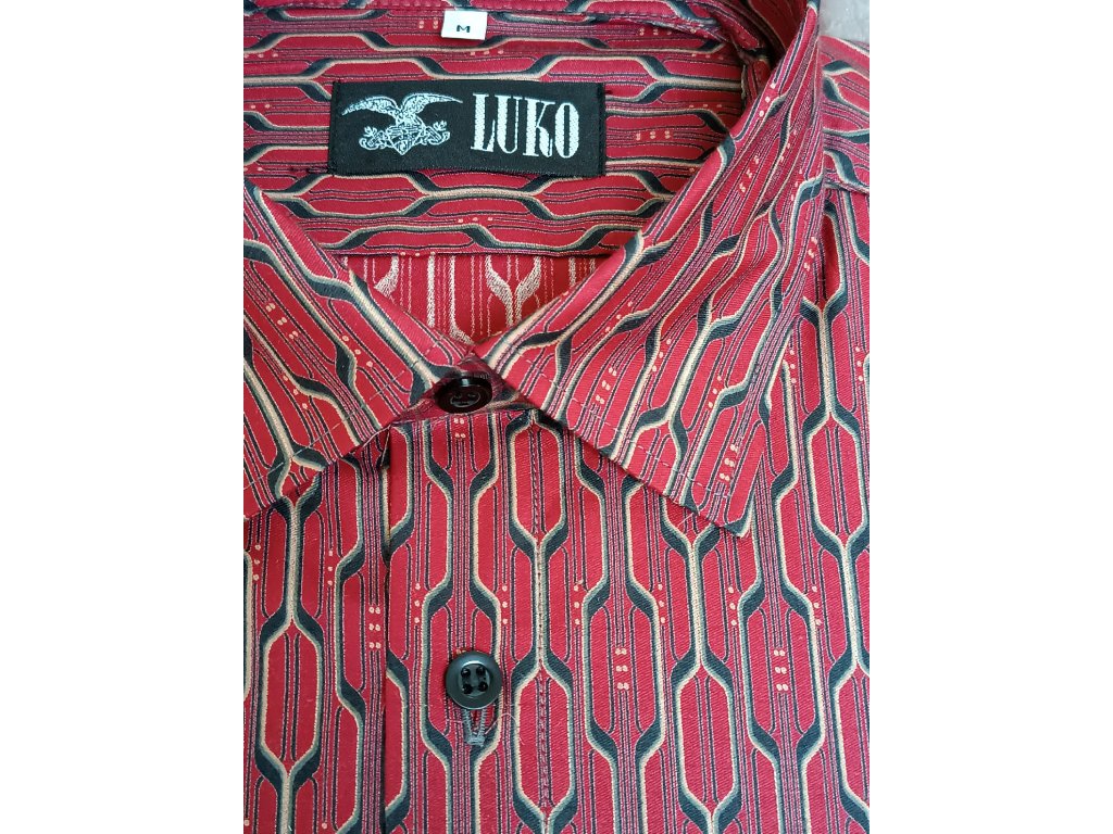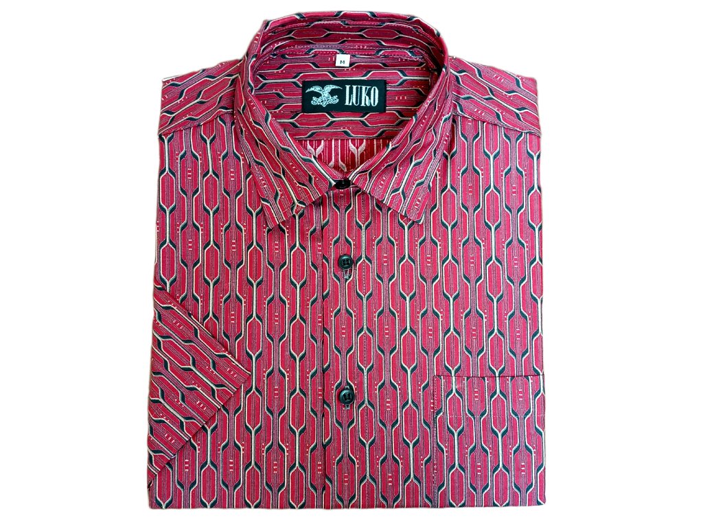 Pánská košile s krátkým rukávem zaujme na první pohled originálním geometrickým potiskem v sytě červené barvě, která dodá každému outfitu šmrnc.