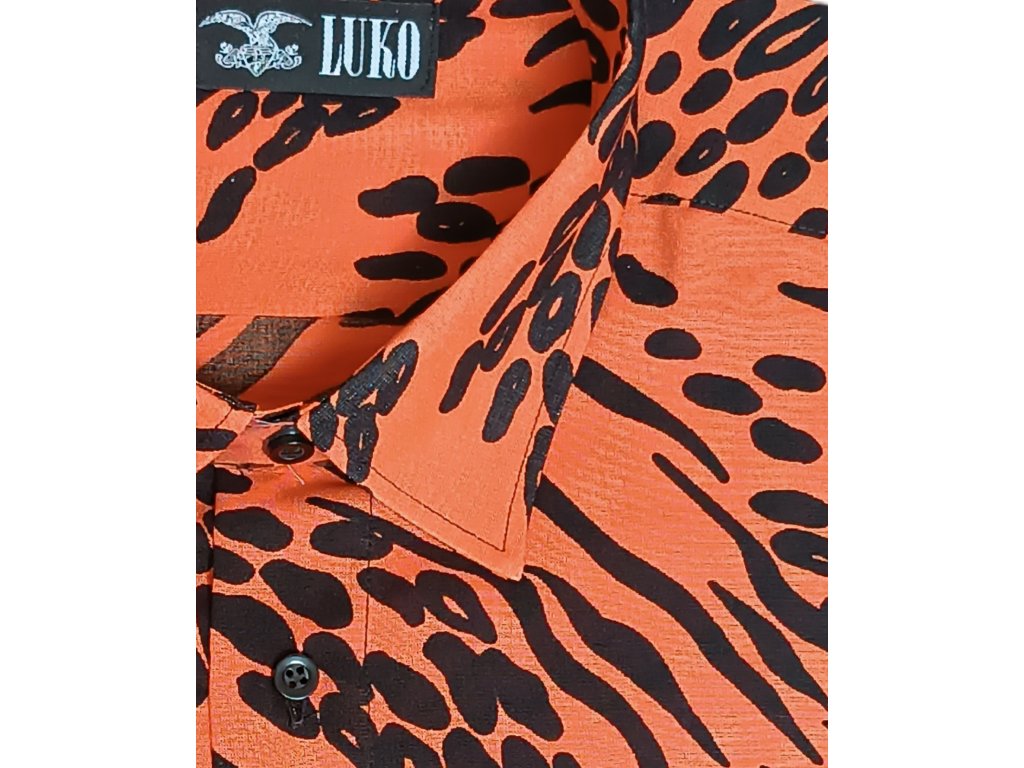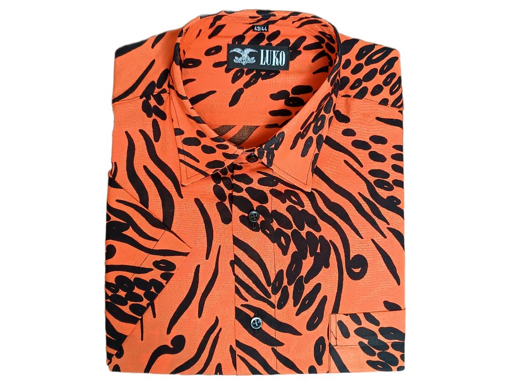 Pánská košile s krátkým rukávem upoutá výraznou oranžovou barvou s originálním tygřím vzorem, díky kterému se rozhodně neztratíte v davu.