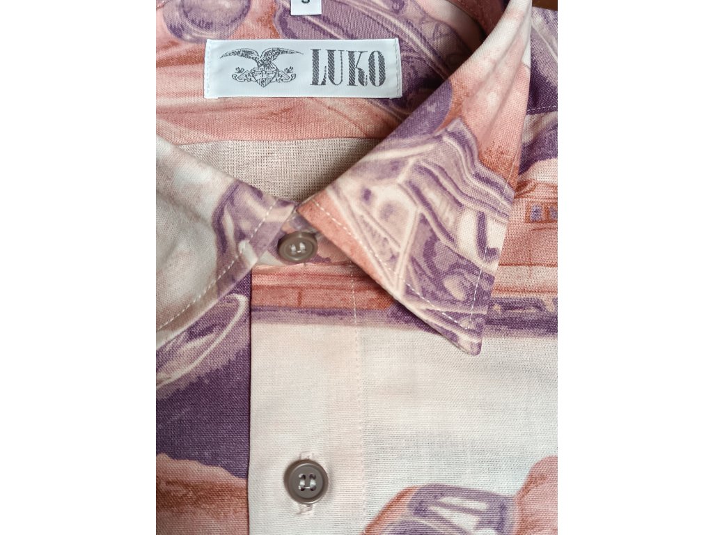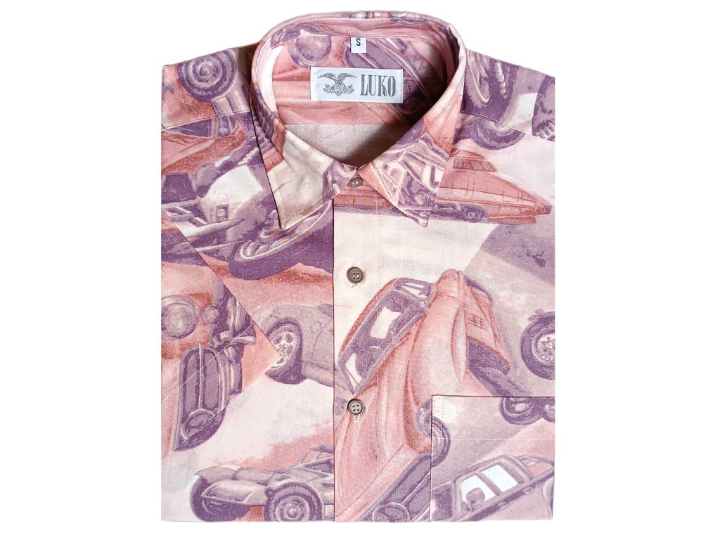 V této košili se rozhodně neztratíte! Výrazný design v odstínech růžové a fialové s motivy legendárních vozů osloví všechny milovníky rychlosti, retra a stylu.