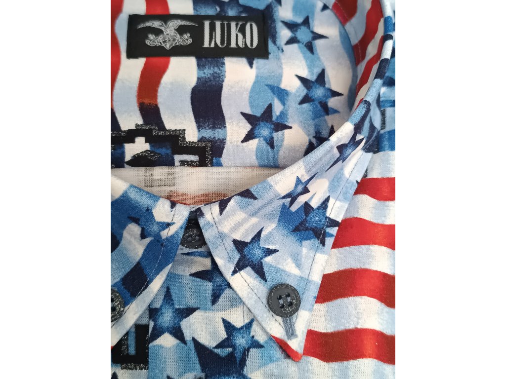 Pánská košile s dlouhým rukávem ze 100% bavlny s potiskem v barvách americké vlajky.